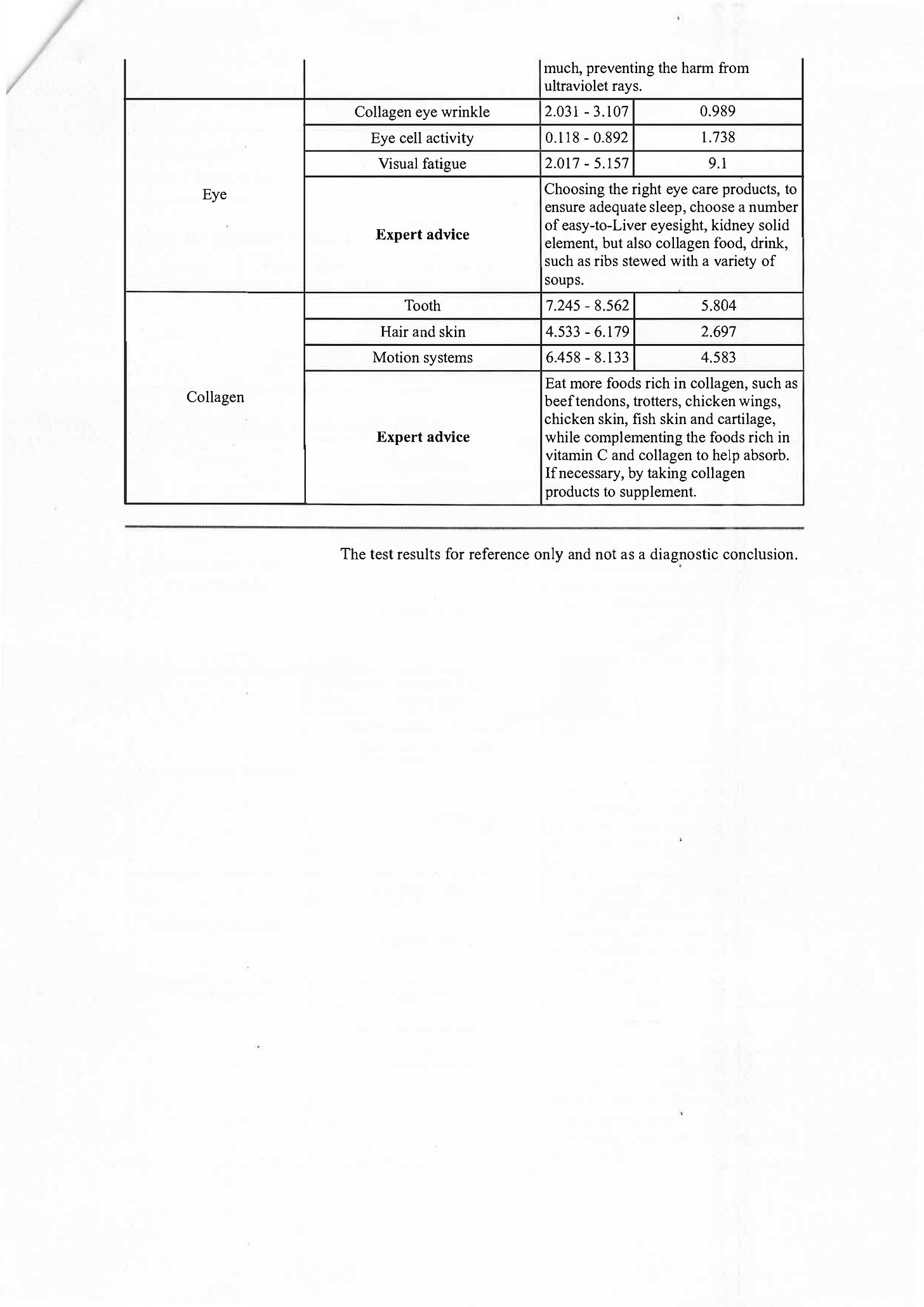 The test results [are] for reference only, and not as a diagnostic conclusion.